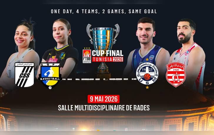 أعلنت الجامعة التونسية لكرة السلة عن موعد نهائيي كأس تونس للأكابر والكبريات، حيث ستقام المباراتان يوم السبت 9 ماي بقاعة رادس متعددة الاختصاصات.